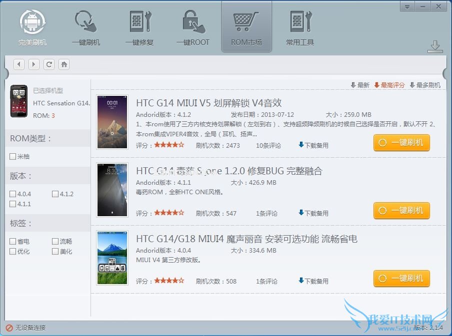 三,找到ROM市场,按条件选择ROM进行刷机。