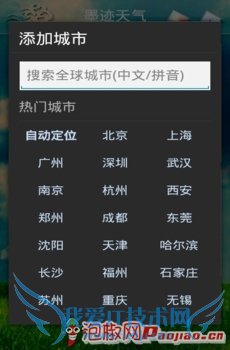 初次运行软件自然会提示童鞋们要选择一个城市来确定天气情况咯,不过这应该不是什么大问题选择天气就选择天气咯。为什么小编还要特意将这个问题拿出来说?原因很简单,虽然简单但是也有很容易忽略的地方。墨迹天气毫无疑问在这一点上做的很全面,但是动感天气对于搜索结果太过于精密反倒不太适合使用,而且中国一些地名都无法识别。