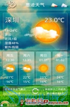 简介:墨迹天气是一款Andriod平台上的免费天气信息查询软件,设计非常的人性化,且使用非常简单,是国内目前支持城市最多的手机天气预报软件。墨迹天气的欢迎页面、功能首页非常绚丽,温度、湿度、紫外线、风力,以及农历日期都一目了然。
