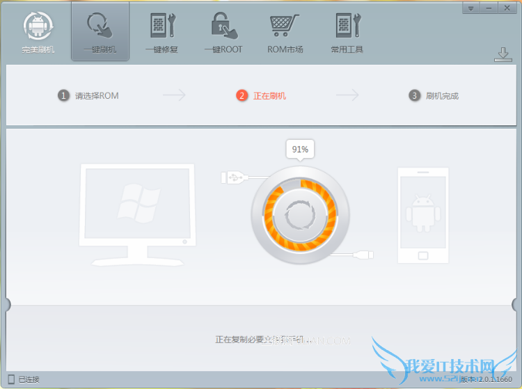 软件进入智能刷机模式,你的HTC G23开始享受刷机服务。