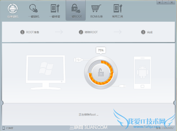 双击root软件图标,启动软件,用数据线连接HTC One X和电脑,确认连接成功再继续下面的操作。