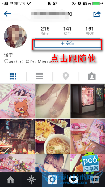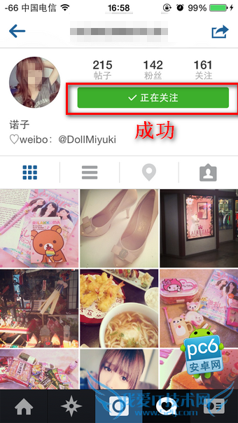 这样就关注成功了,以后就可以在自己的圈子看到他发的图片了。