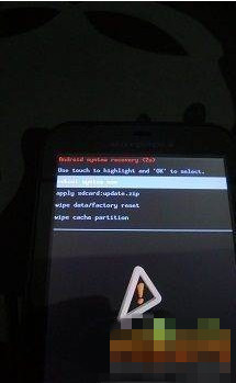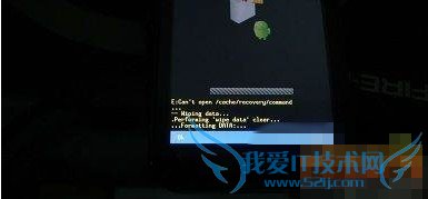 选择"wipe data/factory reset"那一项,然后点屏幕左下角的OK,这时会提示你"yes"还是"no";选"yes"那一项然后再按ok 就会如下图开始wipe: