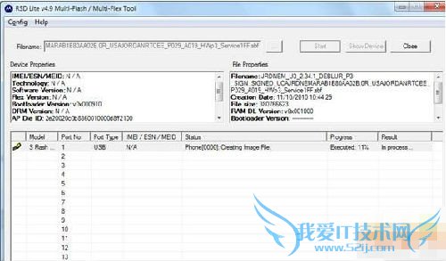 点最上面的按钮(上图的红圈处),选择一个sbf文件,也就是要刷的rom文件,然后点Start开始刷机。