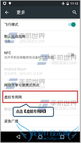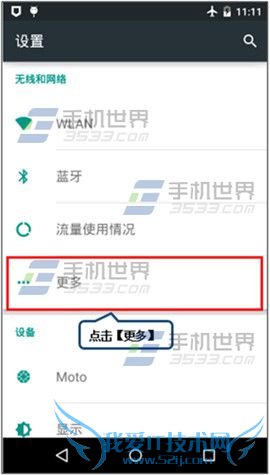 1)打开Moto G的手机【设置】,点击【更多】,点击【虚拟专用网】。(如下图)