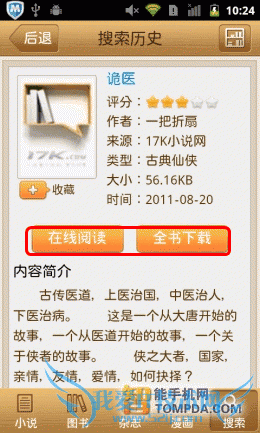 多看阅读的搜索功能比较简单,不过搜索结果比较令人满意,不论是网络小说还是传统文学,都可以搜索到。书籍的下载会在后台进行,不会影响用户继续浏览书城。