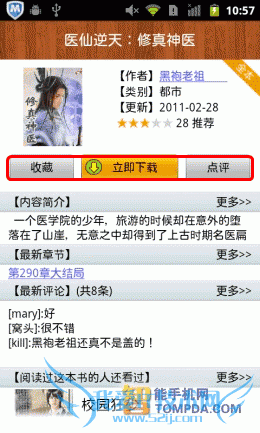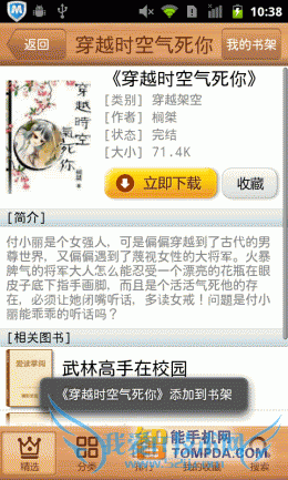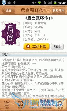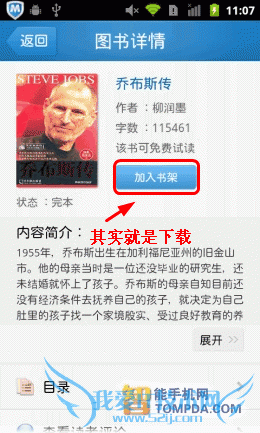 在掌阅书城iReader中挑选一本书,你可以立即下载它,书籍的大小都不大。如果你还是考虑到流量,那么也可以将这本书放入收藏夹,日后下载,不过,iReader同样不支持在线阅读。