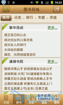 如果要比书库里的存货,恐怕i悦读、GGBook之间有得一拼,而百阅和云中书城基本相同(上文说了百阅接入了盛大文库的资源),而其余软件的书籍可能就没这么多了,起码网络小说没有那么多。在这10款手机阅读软件中,开卷有益、百阅、GGBook、i悦读等软件都有比较详细的分类,有助于用户浏览,另外百阅、i悦读和熊猫看书都支持浏览漫画。