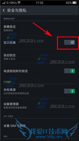 进入R7Plus的设置,在常规一栏点击【安全与隐私】,进入后关闭【显示图案】右边按钮即可。(如下图)