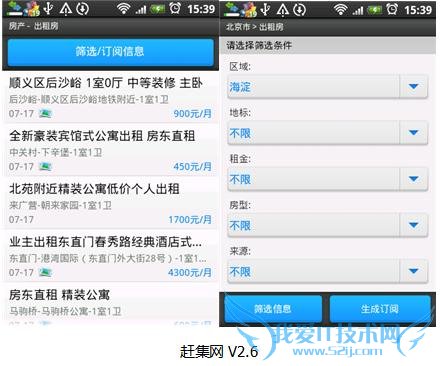 在使用赶集v2.6体验租房信息筛选,过滤信息时,操作项略显麻烦一些,因为会在列表及筛选界面不断的切换。但是赶集网在筛选信息时,可以将筛选条件生成订阅,这个设计是很实用的。