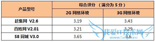 赶集V2.6与58同城V3.0在移动2G/3G环境下的性能综合评分如下: