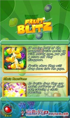 水果突击(Fruit Blitz Free)这款安卓游戏采用了对对碰的玩法设计,通过挑换两个水果的位置,让三个相同的水果连接在一起进行消除即可。没有其他的剧情或者角色来干扰玩家的注意力。游戏的画面非常精致,非常有消除的快感,喜欢消除游戏的玩家可不要错过了哦。