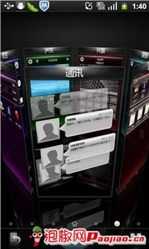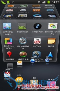 小编点评:全屏桌面的表现还是值得肯定的,OpenGL给它带来了良好的操作体验,无论是3D界面的转换,还是背景特效、镜面倒影特效都表现非常出色。不过由于小编自己手机装的软件比较多,如果一次读取超过原来三个桌面那么多的图标的话,就会有一秒钟左右的延迟,估计是机器性能所导致的,毕竟小编的手机是两年前的产品,处于随时可以退休的状态了。