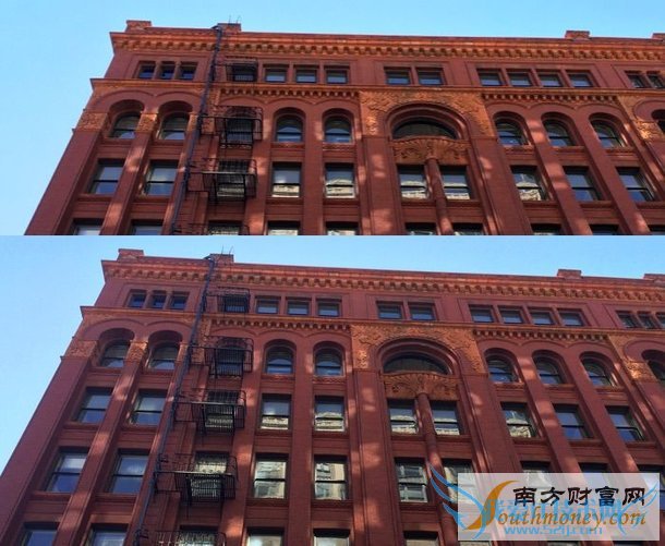 这座红砖房子还有它的安全出口以及各种装饰物也是另外一个例子,iPhone 6s Plus没有像素噪点或者模糊,细节很丰富,色彩也很准确。