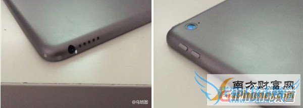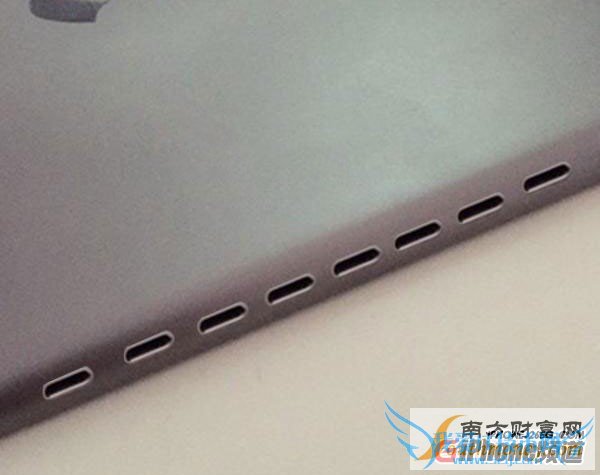 除了 Lightning 接口,图片中的 iPad Pro 还有后置摄像头,以及光传感器和麦克风。扬声器开孔排中增加了耳机接口,这意味着 iPad Pro 将在顶部和底部同时配备扬声器和麦克风,增强立体声体验。除了更大的尺寸设设计元素的区别,iPad Pro 的整体设计与 iPad Air 和 iPad mini 很相似。iPad Pro 将配备12.2-12.9寸的显示屏,搭载 A8X 处理器、2GB 内存和 Touch ID,还有可能支持触控笔。