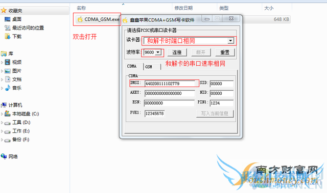 上侧读卡器端口和波特率就是之前解卡时的端口和串口速率,我这里为COM2、9600。