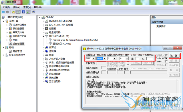 打开这款SimMaster2011之后,将端口设置为自己之前准备工作中设置的端口,我这里为COM2,串口速率也就是之前提到的9600了。其他项默认即可。点击右侧的“连接”。