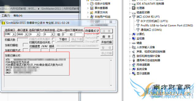 点击“连接后”看到ICCID、IMSI、SMSP码,勾选“防爆模式”,开始扫描