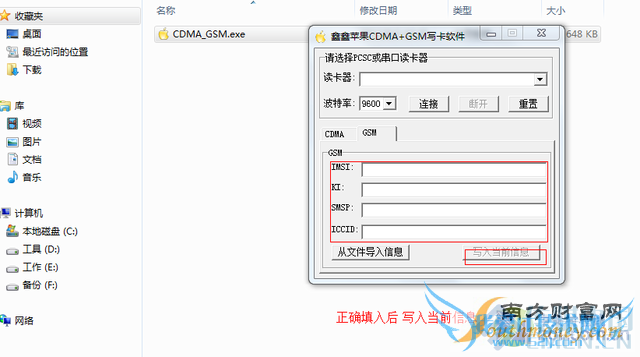 下侧数据CDMA部分(用于激活基带)出IMSI码需要填写成解卡得到的数据(一定要保证准确无误),其他均默认即可;GSM部分分别填入ICCID、IMSI、SMSP、KI码即可。