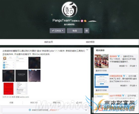 iOS8越狱工具更新了内置Cydia吗_内置Cydia的iOS8越狱工具更新时间 越狱爱好者一直关心的盘古越狱工具什么时候集成Cydia,最近盘古团队给了肯定的回复——24小时之内。