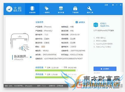 1、基于越狱的特殊性,越狱前请提前备份重要数据。如您需要升级至iOS8.3系统后越狱,可使用太极刷机大师保数据升级的模式更新至iOS8.3系统后越狱。