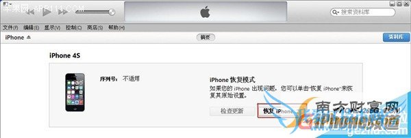 3、按住键盘上的 shift 键 iTunes 上的“恢复”,选择 iOS8.1.1 正式版固件下载
