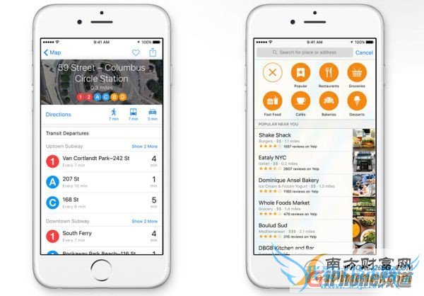 这是一个显著的提升,比如随时获取公交、火车、地铁、轮渡等公共交通工具的线路导航和实时位置等,还有利用 Transit 快速找到出站口和进站口,指导用户快速进出车站。这些功能在 iOS 8 上并不支持,而且在中国,Transit 方式将适用于超过 300 个城市!
