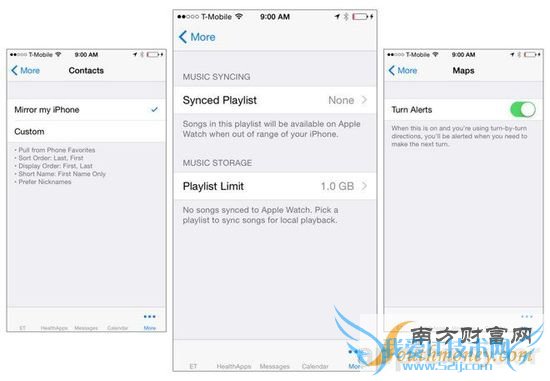 利用iOS 8.2内置的应用程序,用户可以自定义许多Apple Watch的基本配置。比如Apple Watch主显示屏所显示的内容,或本地存储在设备上的音乐或照片,以及个性化的短信息快速回复选择等。