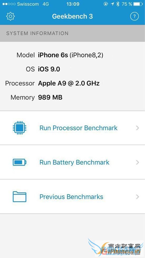 苹果iPhone6S配置曝光:仍采用1GB RAM 关于iPhone 6s的配置已经不是秘密了,其中最令人的惊喜莫过于它将会采用2GB的运行内存。如果你正期待2GB内存的话,你可能要失望了。Geekbench是一款老牌的跑分软件,一直以来都是大家用来测试新产品性能高低的重要工具。近日网络上出现了一张由iPhone 6s测试的Geekbench 3跑分截图,显示了苹果iPhone 6s仍然采用1GB RAM。