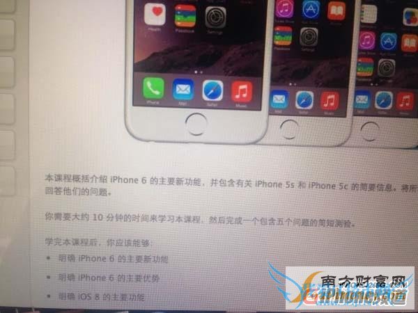 尽管所谓10月10日开卖的消息真伪尚需证实,但根据一位自称苹果官方零售店员工的最新爆料称,苹果零售店已经为iPhone 6内地上市做培训,样机将在10月7日起在专卖店摆上货架。由于这位爆料员工还同步放出了疑似苹果员工培训的内部课程照片,而且相关文件中也出现了iPhone 6的图片,所以看上去似乎还是具有的一定可信度。