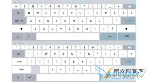 新增的这一行标志符号键盘和我们在硬件键盘上看到的标志符号键盘一样,在硬件键盘上这些符号是在数字键盘上。另外在“p”键盘旁边还增加了括号标志。键盘第二页也有了新的布置,标志工具栏换成了数字。通过这些新的布局方式苹果可以删除掉为标志符号而设的“第三页”,只需要两页就能布置所有的按键。