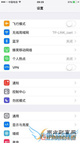 1.进入系统设置之后,界面将从飞行模式开始显示,而不像之前一样显示不完全。