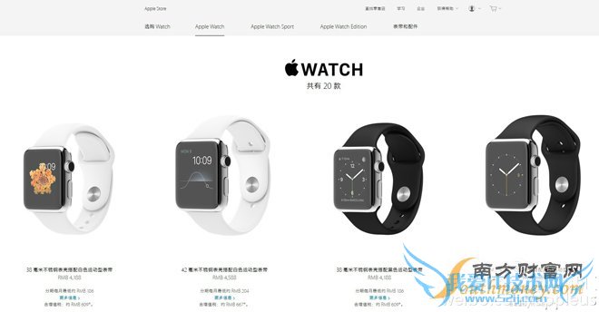 其中Apple Watch采用了不锈钢表壳和表带,根据表盘大小和表带材质不同有不同的售价,一共有20个版本,售价4188元起。