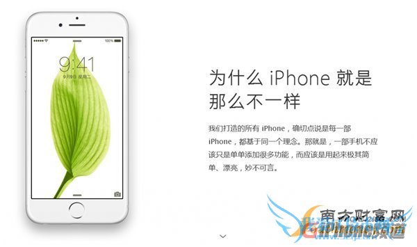 iPhone6S/6S Plus即将上市 苹果官网开新专区 新一代iPhone到来之际,苹果在官网上推出了一个全新的专区,并以“为什么iPhone就是那么不一样”为题,解释了iPhone的人气一直居高不下的原因:“我们打造的所有iPhone,确切点说是每一部iPhone,都基于同一个理念。那就是,一部手机不应该只是单单添加很多功能,而应该是用起来极其简单、漂亮,妙不可言。”