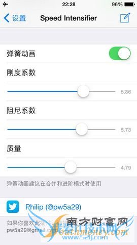 此外在插件当中还可以对于是否在图标震动时使用加速进行选择,用户还可以对弹簧动画的各种数值进行设置,而黑名单功能则让用户可以对个别应用进行设置。值得提醒的是,在选择较高速率时在打开应用程序的时候会出现卡顿的情况,此时降低速率即可。目前插件在Cydia当中完全免费,且已经支持了iOS 8,感兴趣的用户都可以下载一试。