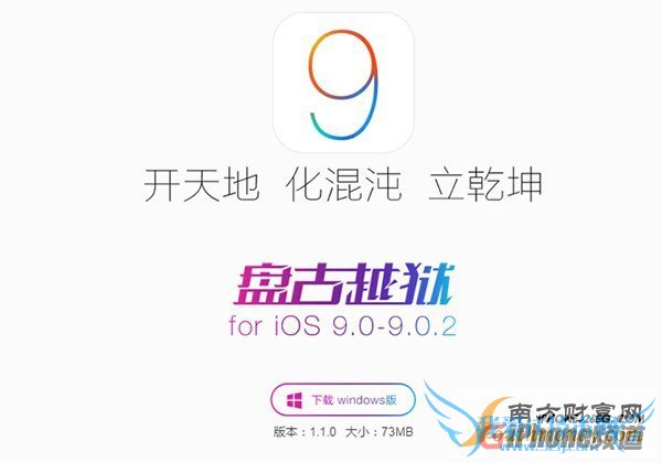 iOS9完美越狱工具更新至v1.1.0:提高越狱成功率 盘古此前宣布放出全球首个iOS9完美越狱工具,但是越狱稳定性不足,并出现不少问题。针对网友反馈的问题,此后盘古团队又放出1.0.1版,修复了大量bug。今天晚上,盘古团队又在微博宣布,iOS9到iOS9.0.2的完美越狱工具已经更新到Windows 1.1.0版本,本次更新旨在提升越狱稳定性和成功率。