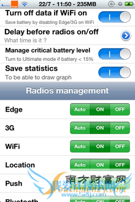 《BattSaver for iOS 7 & 8》是插件《BattSaver》在iOS 7独立版本上更新支持iOS 8.0的版本,它可以让用户的设备耗电服务功能开关更加的智能化,可以让用户在某些状态下自动开关这些耗电的功能,已达到节约电量的目的。本次更新添加了2G、3G、4G的开关。