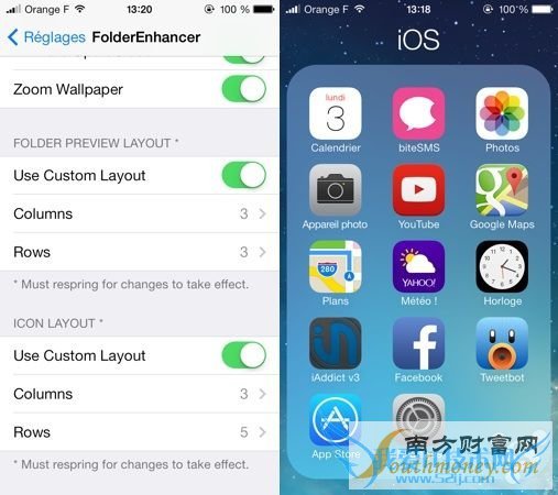 FolderEnhancer (iOS 7/8) 当前版本 2.4.2.1 兼容 iOS 8 收费0.99美元