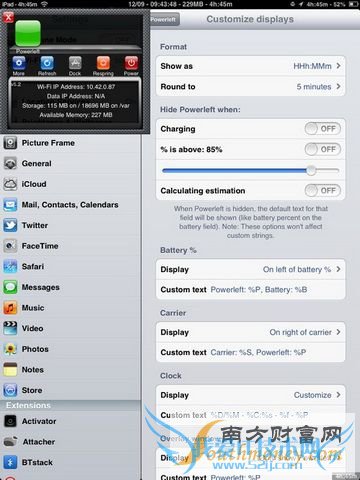 《Powerleft》可以帮助用户估算电池剩余的使用时间,插件的主要特色是用户可以对这个显示模式进行自定义,包括显示位置、浮窗、状态栏等,在任何位置显示剩余电量的信息。