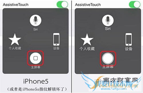 在设置—通用—辅助功能打开AsssistiveTouch,iPhone5和iPhone5s的Hhome键标志也不同。(注:iPhone5s的指纹解锁模块坏了后Home键标志也会变成和iPhone5一样)