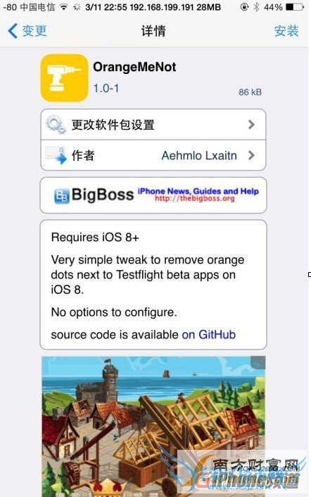 消除小黄点的方法很简单,那就是安装【OrangeMeNot】插件,可以打开cydia,bigboss源搜索下载,搜索不到请刷新下源,复制插件名称搜索即可!轻轻松松解决你的强迫症。如果你嫌麻烦的话,只需打开新应用,小黄点也会自动消失。或是等新版应用通过Apple Store审核后,小黄点也会自动消失。