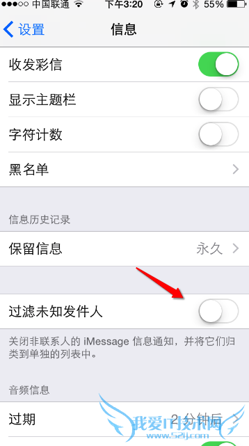 2、仅接受来自联系人的信息,拒绝陌生人的iMessage