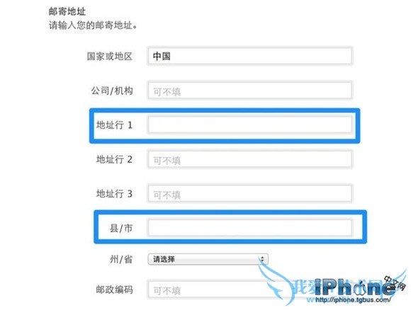 8、第五部分是有关于个人邮寄地址的信息,因为Apple ID还可用于在苹果的在线商店购买实物,所以这是为了满足这个要求。下图标识的两处,必须要填写。