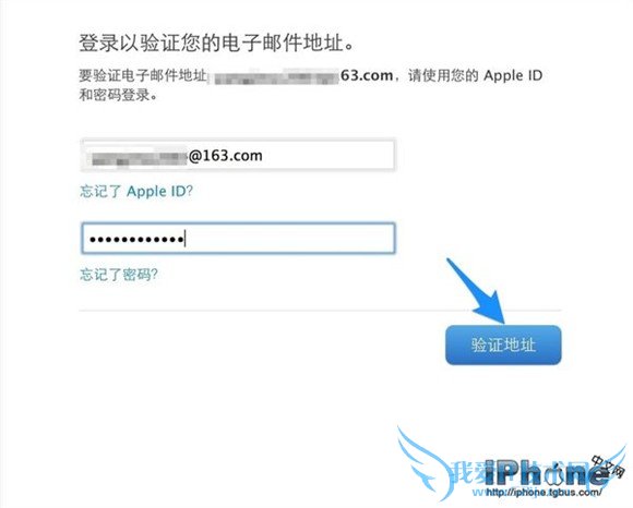 11、点击邮件中的立即验证以后,会跳转到苹果的验证页面中,输入我们刚刚创建的Apple ID和密码,点击“验证地址”按钮。