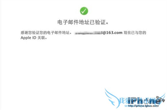 12、验证成功以后,会提示我们之前注册的这个电子邮件已经与苹果的Apple ID关联好了,可以在苹果设备上使用了。