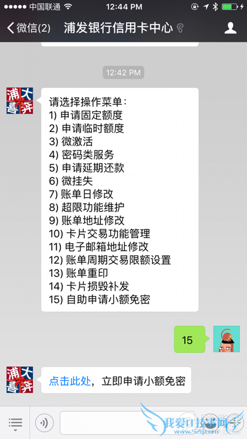 2、通过浦发微信号【浦发银行信用卡中心】开通:进入公众号之后点击【微服务-账户维护-自助申请小额免密】,确认开通即可。