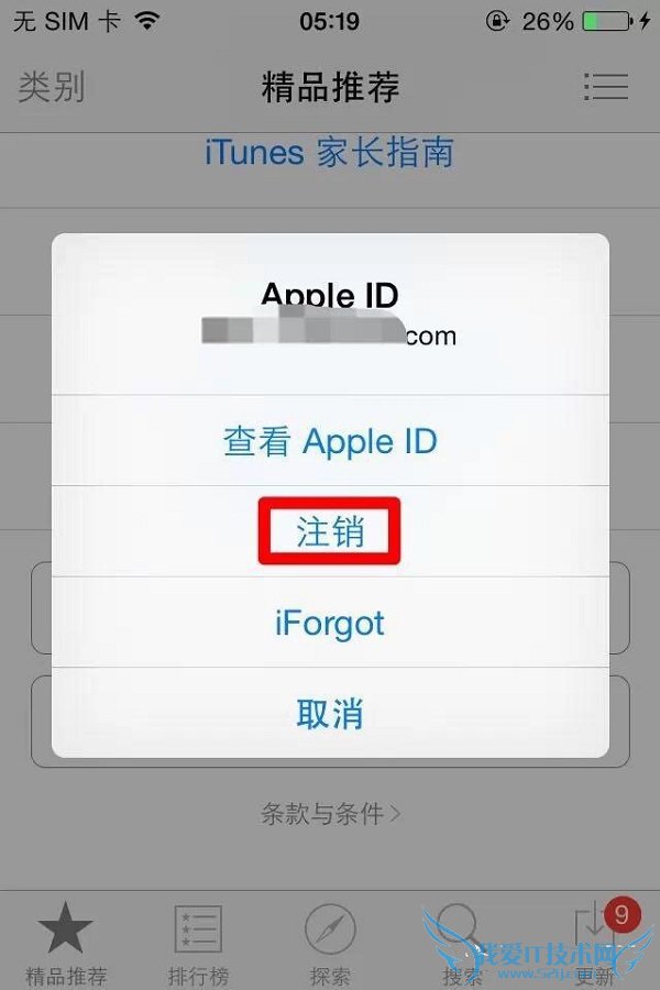 第二步,点击一下你的Apple ID ,在弹出的对话框中选择注销即可。