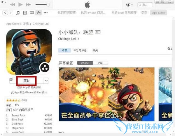 第一步,打开iTunes程序,浏览需要下载应用,然后点击“获取”,即可下载该应用。