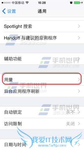 第1步:依次进入“设置-通用”界面,点击“用量”选项进入。