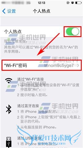 2)现在我们返回设置界面点击【个人热点】,先打开【个人热点】右边滑块,再设置好【Wi-Fi密码】即可。(如下图)